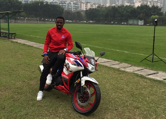 本周二下午,工作人员将样车送到了力帆俱乐部,让费尔南多拍摄代言照片,他本人对这件事相当开心,不仅是骑在摩托上摆POSE,还提出想骑着跑两圈。可惜工作人员表示摩托车刚下线,还没有加油,所以费尔南多骑车的愿望未能成功,不过他本人对于能拥有自己品牌的摩托车很激动:“真没想到我能有自己的品牌摩托,回去我一定要和朋友分享这件事,哈哈!”